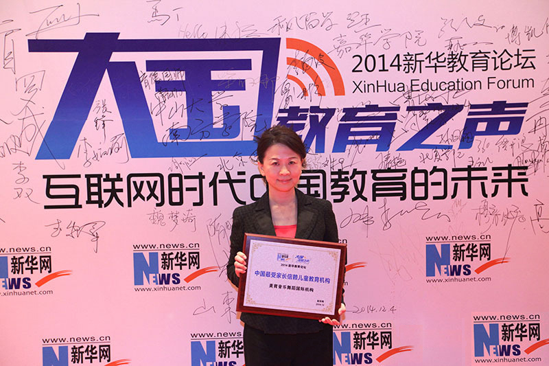 美育音乐舞蹈国际机构获得了“2014年中国最受家长信赖的儿童教育机构”称号。